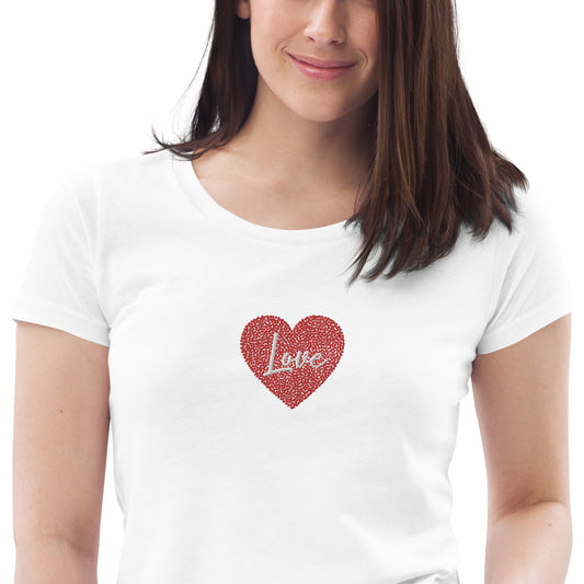 Women's short-sleeved T-shirt with heart and embroidered love writing | Various colors | heart love