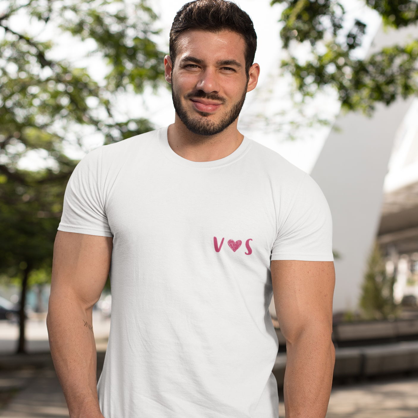 Personalized Men's and Women's T-shirt with His and Hers Initials and Embroidered Heart | Gift idea